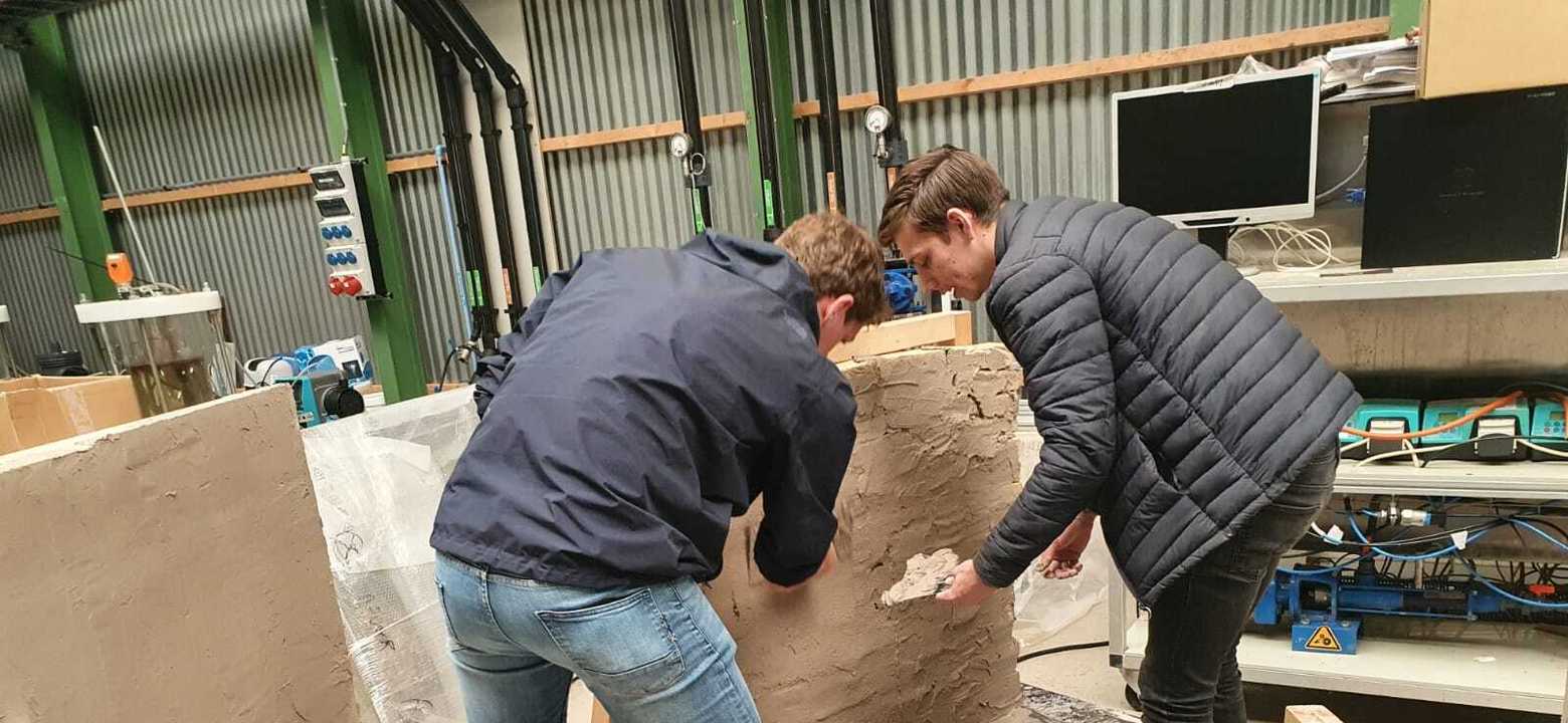 Waterzuiveringsinstallaties zorgen voor schoon water. Maar het zuiveringsproces zorgt ook voor reststromen. In sommige gevallen gaat het om afvalmateriaal dat alleen nog verbrand kan worden. Hoe mooi is het dan als je van reststromen een nieuw, duurzaam product kunt maken? Harry Futselaar en Anne Corine IJzer, respectievelijk lector en docent-onderzoeker bij het lectoraat International Water Technology, gingen samen met praktijkpartners en studenten op zoek naar een hoogwaardig en duurzaam alternatief voor het pleisterwerk dat op dit moment in de bouwsector wordt gebruikt. Ze namen onder andere het veelzijdige restmateriaal Kaumera onder de loep, en combineerden dit met andere componenten. De eerste stenen voor ‘groener’ pleisterwerk werden gelegd.