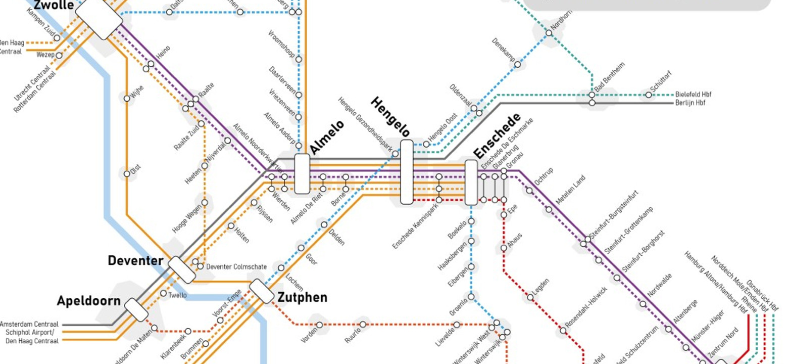 Tube map uit het rapport van mogelijke treinverbindingen in het grensgebied (Stan Geesing, 2023).
