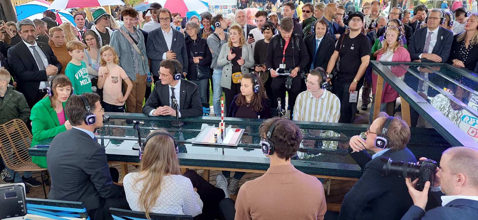 Saxion-studenten op Bevrijdingsfestival Overijssel in gesprek met Rutte over de kracht van de grensregio
