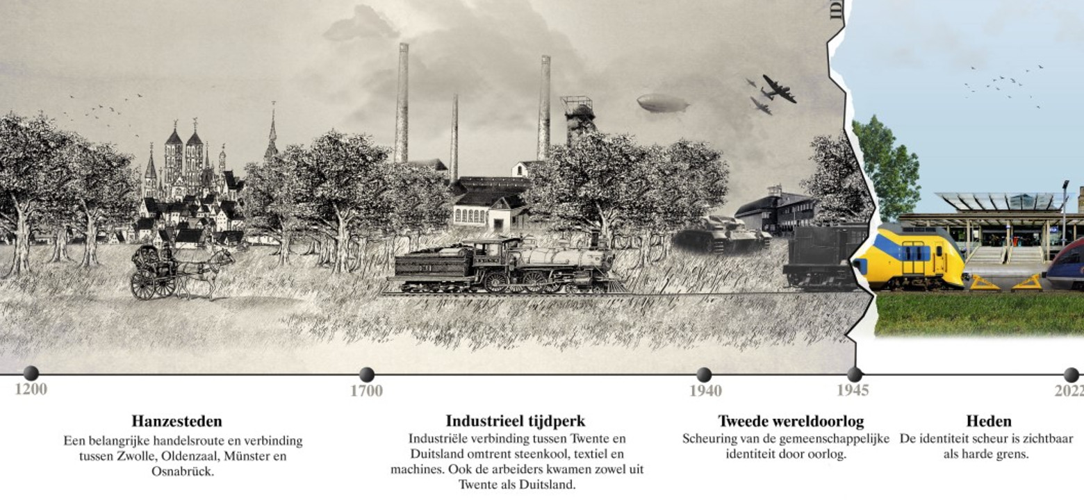 In hun rapport is te lezen dat de Tweede Wereldoorlog in dit gebied een scheur veroorzaakte tussen Nederland en Duitsland. Volgens de studenten zie je dat nog steeds. Ze noemen de ‘stootblokken’ op het station van Enschede, die het spoor tussen Enschede en Gronau onderbreken, als voorbeeld. Marijn: “Die waren er ten tijde van de industriële revolutie niet. Voor meer verbondenheid en grensoverschrijdende samenwerking, moeten we dus eigenlijk een stapje terugzetten, naar hoe het toen was”.