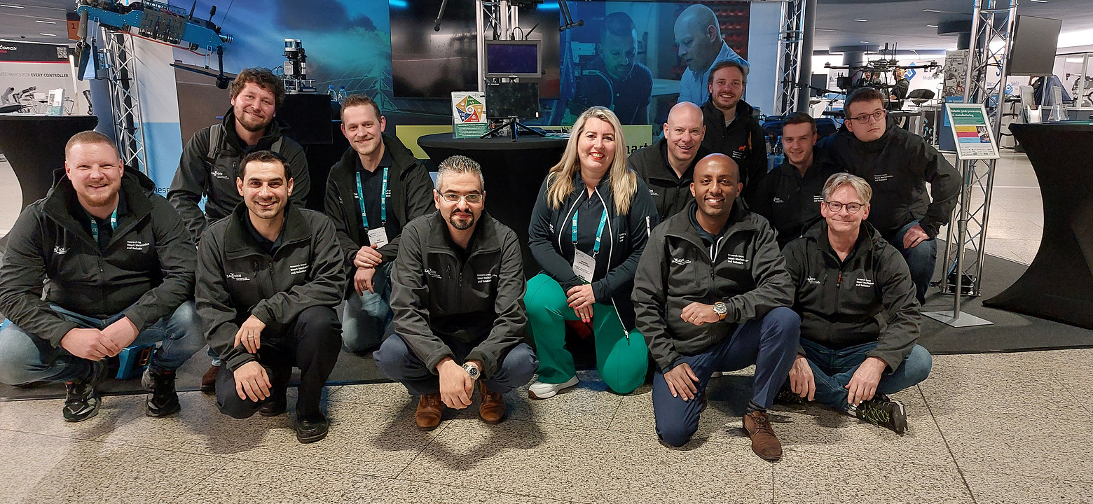 Abeje Mersha en team bij de stand van het lectoraat Smart Mechatronics and Robotics tijdens het European Robotics Forum 2025 in Stuttgart.
