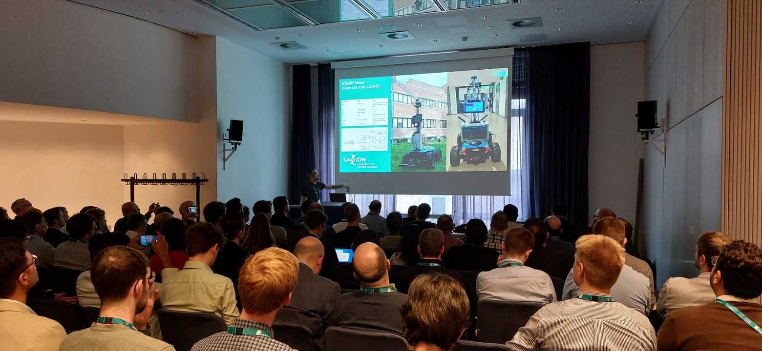 Als coördinator van de Topic Group Autonomous Navigation, is Abeje door de jaren heen met het ERF meegegroeid. Vier jaar geleden toonde hij met zijn team al een demonstrator in Rotterdam. Dit jaar in Stuttgart ging het om meerdere demonstrators en vier workshops over verschillende thema’s. “Die workshops zaten helemaal vol,” zegt Abeje. “Sommige geïnteresseerden wilden ons direct opnieuw bij Saxion ontmoeten. Kijk, dit was onze setup…” Abeje draait zijn laptop een kwartslag om op tafel en tovert enkele foto’s tevoorschijn op zijn scherm. We zien een professionele stand en een groepsportret, onder andere met de COO van Mercedes Benz en de burgemeester van Stuttgart.