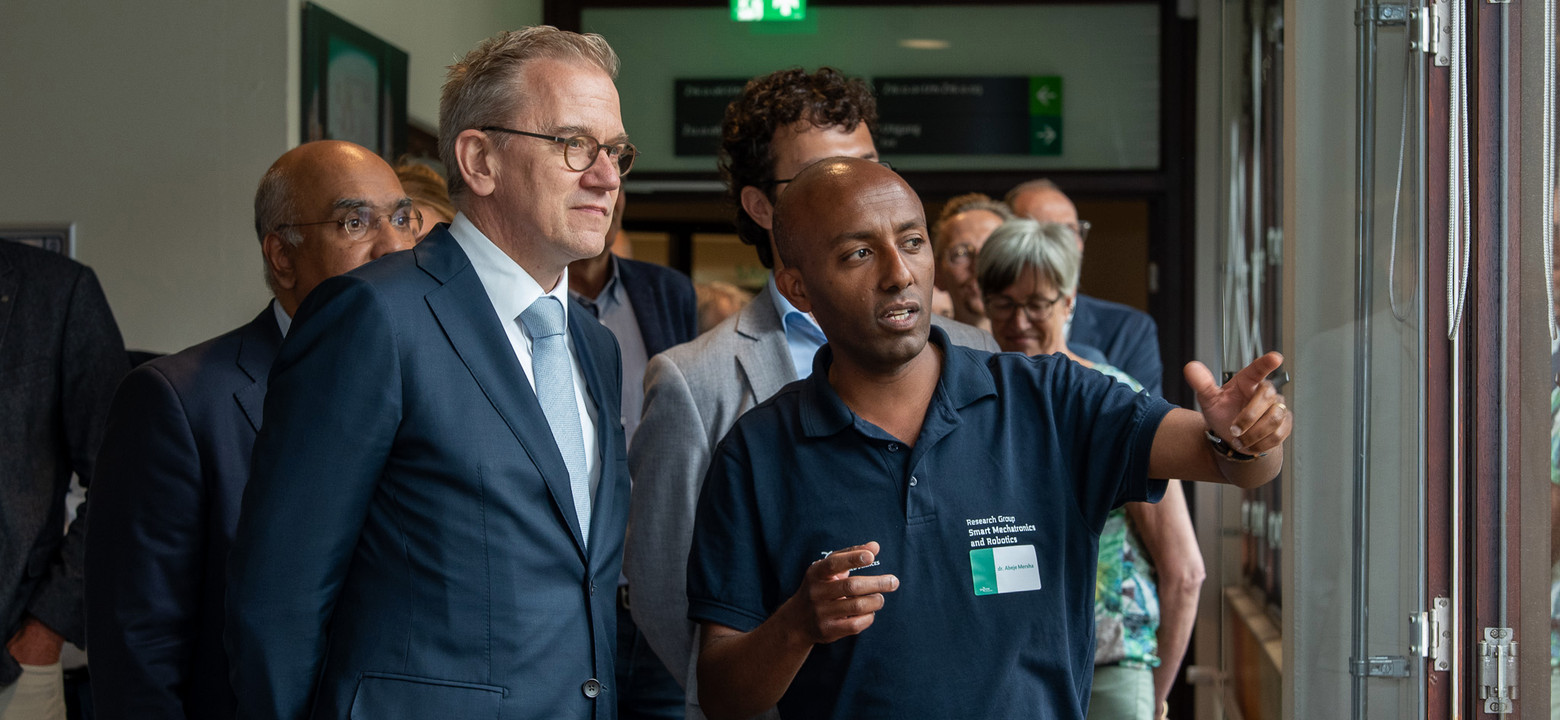 Minister Eppo Bruins met Abeje Mersha, lector Smart Mechatronics & Robotics.