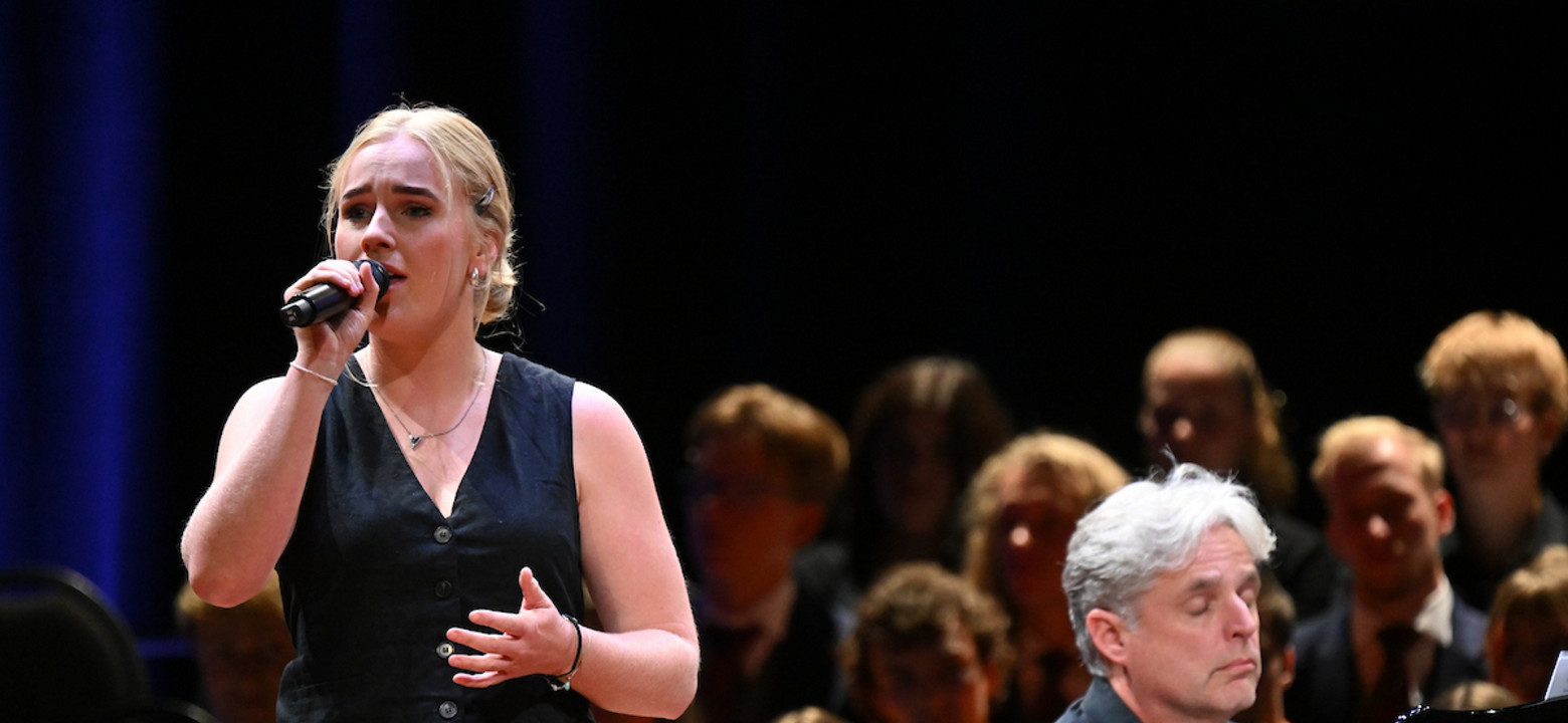 Tijd voor een muzikaal intermezzo. Where everybody knows your name, zong Boukje Loohuis, oud-student van ROC van Twente. Het was een verwijzing naar het hoge percentage oud-studenten dat na hun studie in de regio blijft ‘plakken’. Talent dat broodnodig is, in diverse sectoren. En ook al ga je hier weg, zei Laurens ten Den, je bent altijd weer welkom op ‘oale groond’.